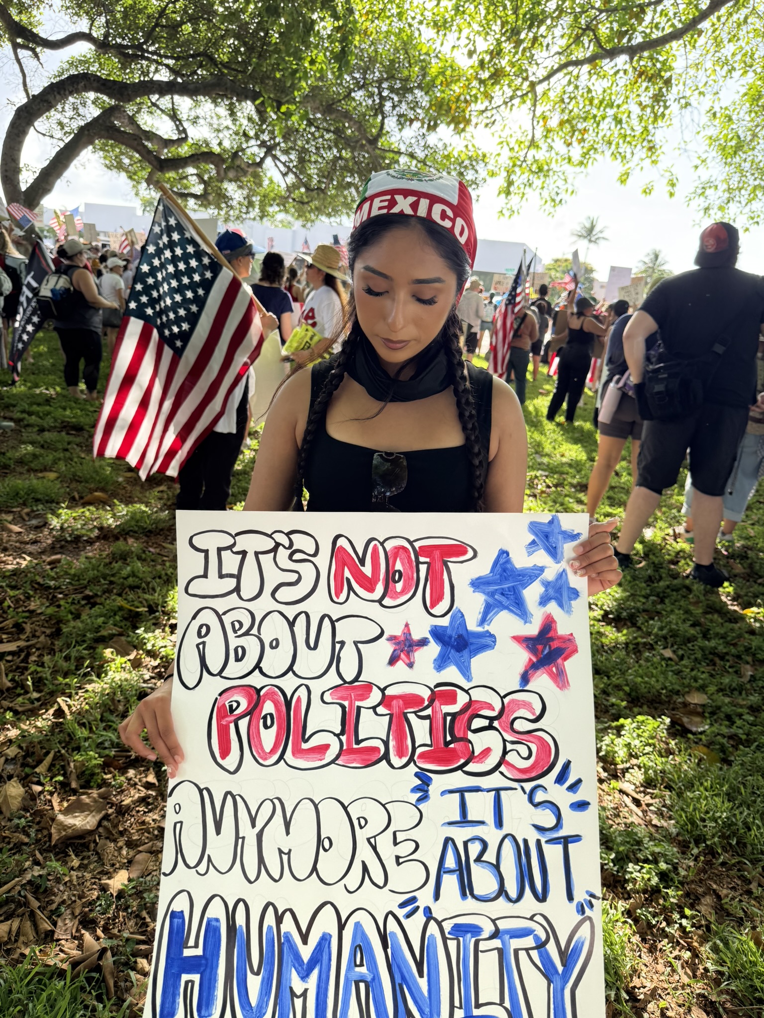 Although Trump was in Washington, D.C., protestors from different parts of South Florida felt compelled to rally near his Mar-a-Lago estate. The crowd, diverse in background and message, converged from the nearby Phipps Skate Park and marched peacefully to within blocks of the former president's home.