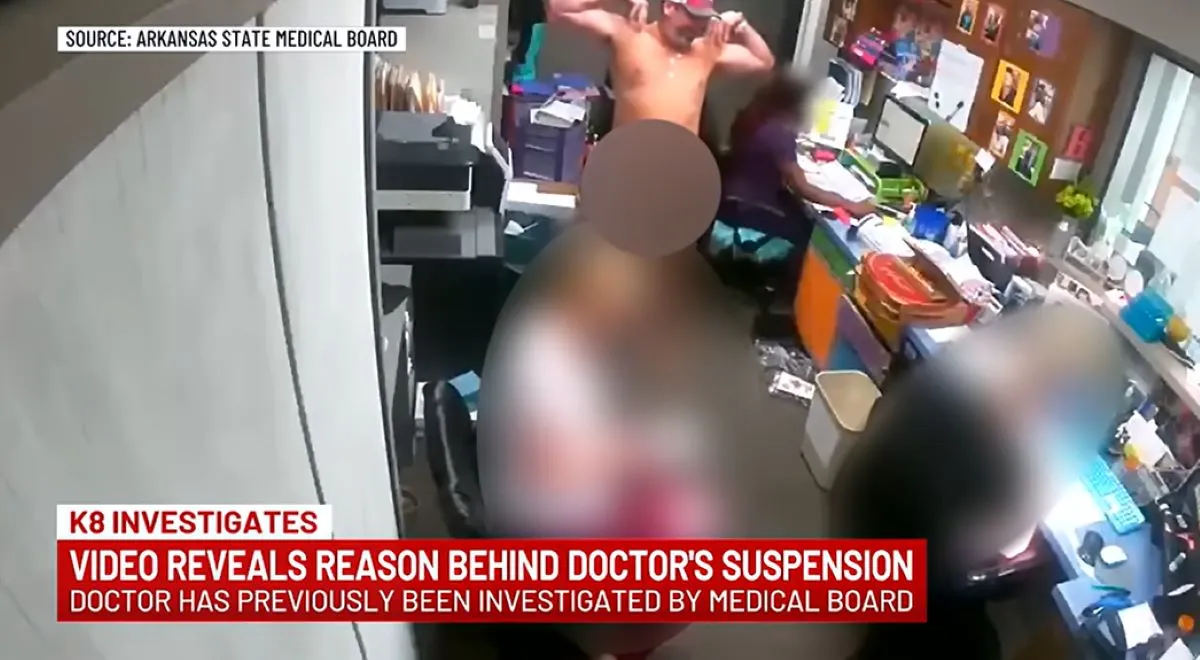 An Arkansas doctor got his license suspended after he was caught on camera walking around the office naked and masturbating on a female receptionist.