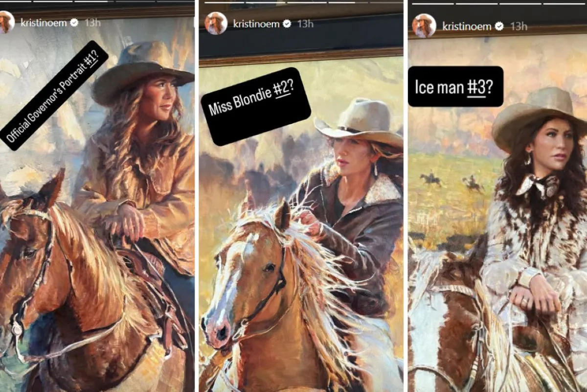 Kristi Noem is being berated online after she asked her followers for their thoughts on potential governor's portraits while rescue efforts in Texas continue.